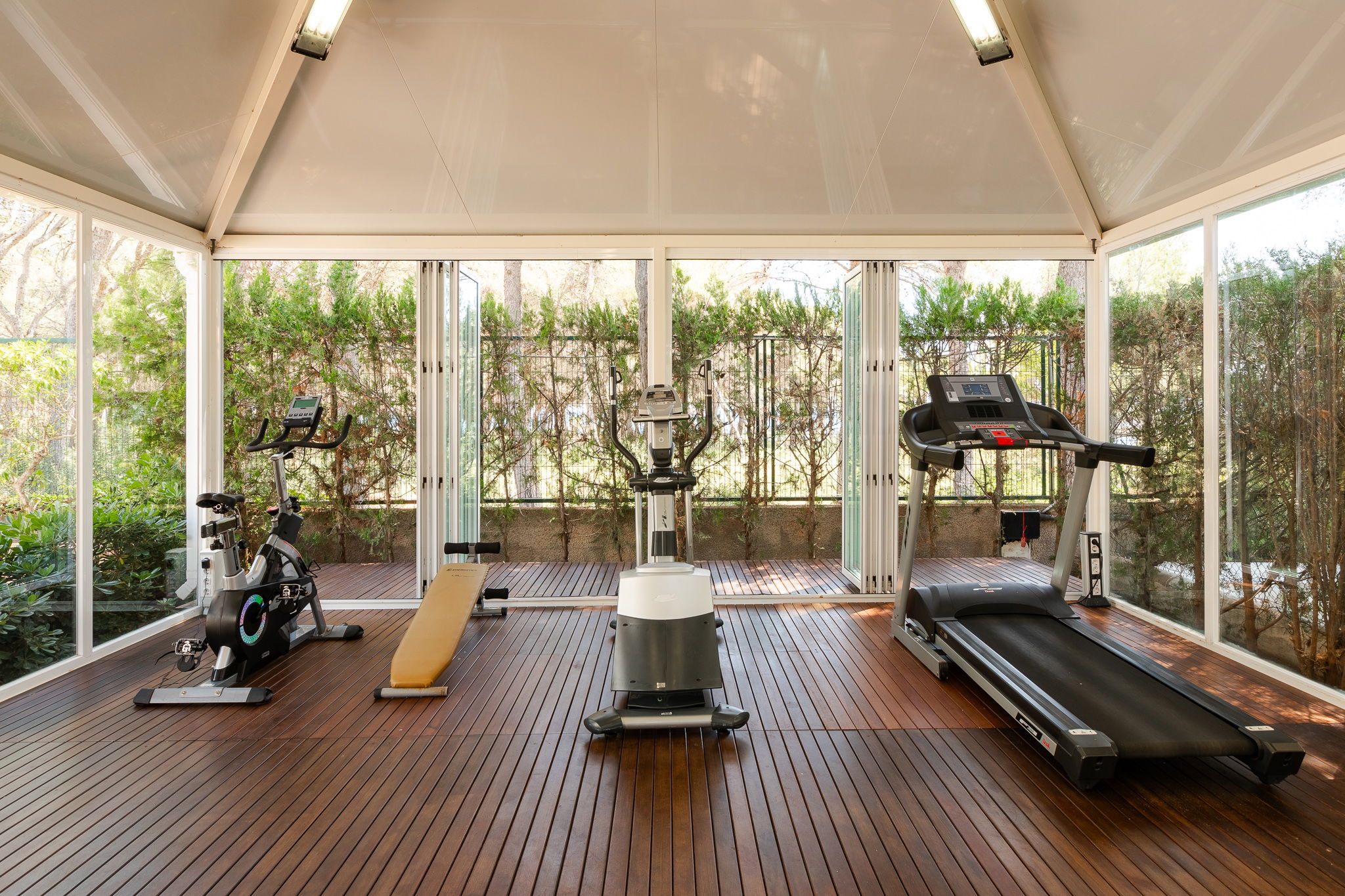 La verdadera protagonista es su terraza privada, un refugio rodeado de vegetación donde el tiempo se detiene. Aquí podrás tomar el sol, relajarte en sus cómodas tumbonas o disfrutar de una copa al atardecer.